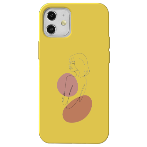 Apple iPhone 12 Mini Çizgi Kadın Sarı Renkli Silikon Telefon Kılıfı