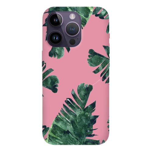 Apple iPhone 14 Pro Dağ Palmiyesi Pembe Renkli Silikon Telefon Kılıfı