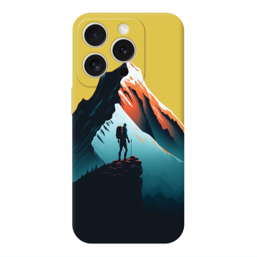 Apple iPhone 15 Pro Max Dağcı Sarı Renkli Silikon Telefon Kılıfı