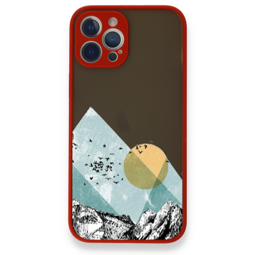 Apple iPhone 12 Pro Dağlar Ay Kırmızı Hux Telefon Kılıfı