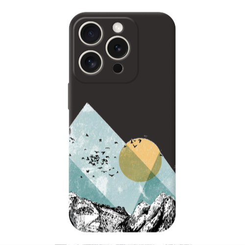 Apple iPhone 15 Pro Dağlar Ay Siyah Renkli Silikon Telefon Kılıfı