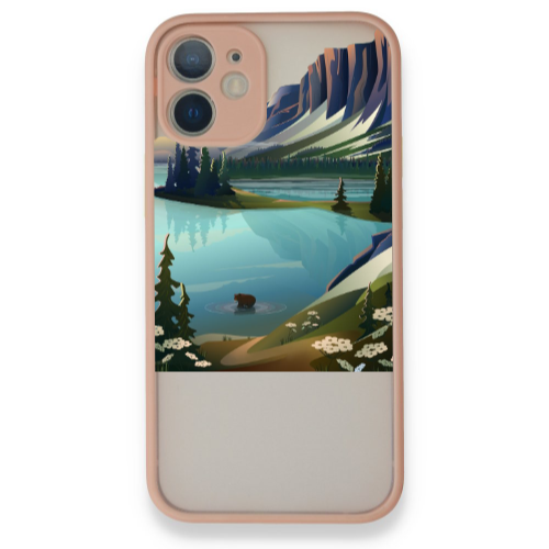 Apple iPhone 12 Mini Dağlar Pembe Hux Telefon Kılıfı