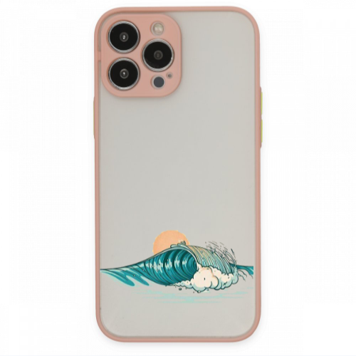 Apple iPhone 13 Pro Max Dalgalar Pembe Hux Telefon Kılıfı