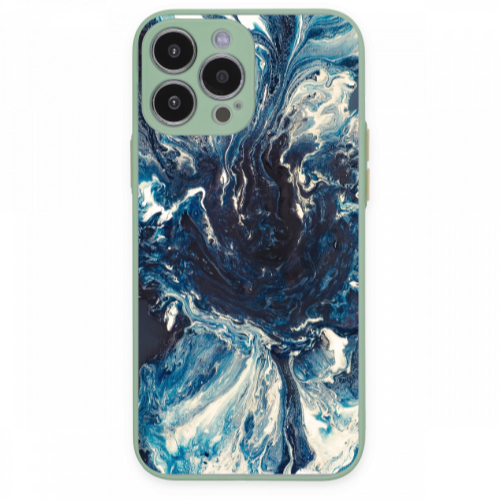 Apple iPhone 13 Pro Max Dalgalı Beyaz Turkuaz Hux Telefon Kılıfı