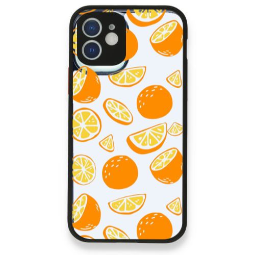 Apple iPhone 12 Dilim Portakal Black Glossy Telefon Kılıfı