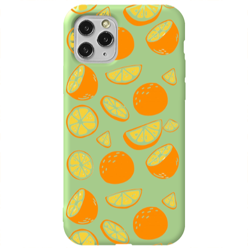 Apple iPhone 11 Pro Max Dilim Portakal Açık Yeşil Renkli Silikon Telefon Kılıfı