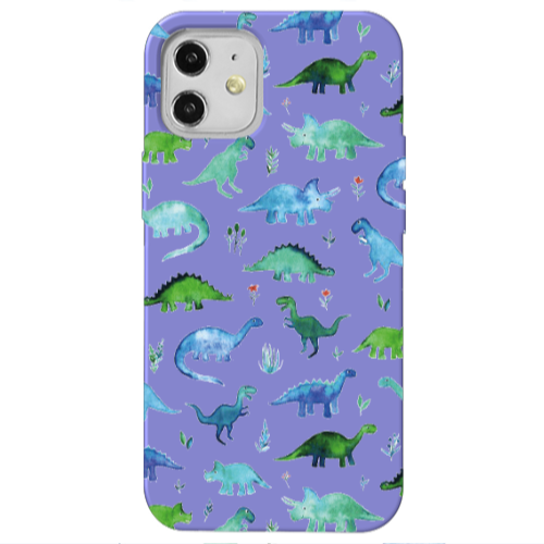 Apple iPhone 12 Dinazorlar Kalp Lila Renkli Silikon Telefon Kılıfı