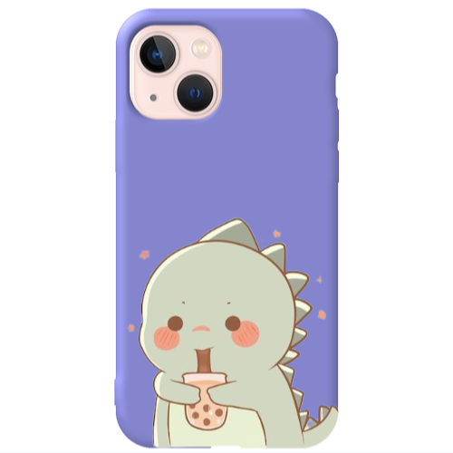 Apple iPhone 13 Mini Dinozor Lila Renkli Silikon Telefon Kılıfı