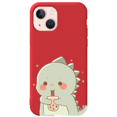 Apple iPhone 13 Mini Dinozor Kırmızı Renkli Silikon Telefon Kılıfı