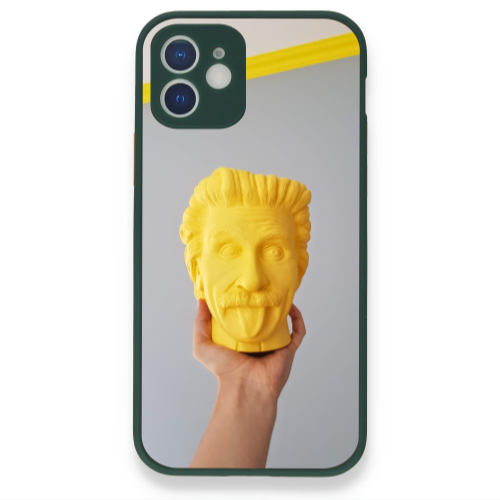 Apple iPhone 12 Mini Einstein Büst Koyu Yeşil Hux Telefon Kılıfı