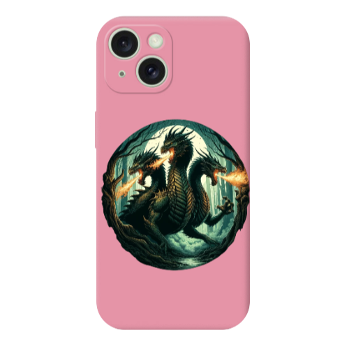 Apple iPhone 15 Ejderhalar Pembe Renkli Silikon Telefon Kılıfı