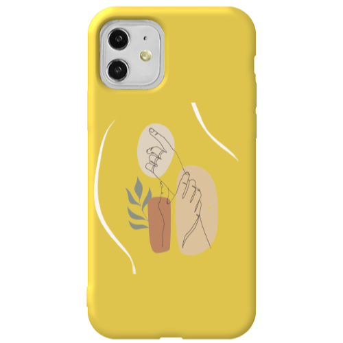Apple iPhone 11 El Üstünde Sarı Renkli Silikon Telefon Kılıfı