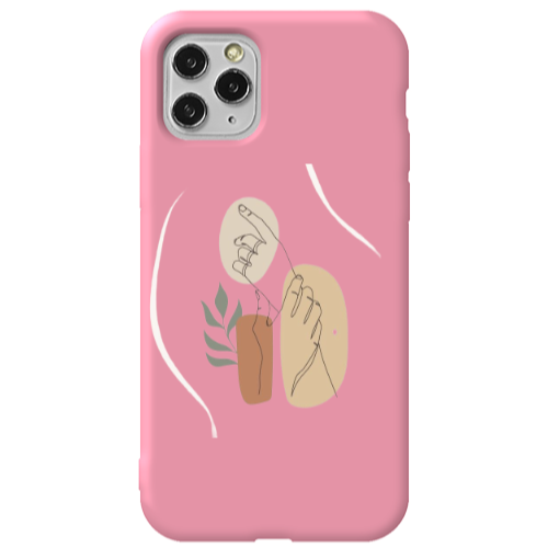 Apple iPhone 11 Pro El Üstünde Pembe Renkli Silikon Telefon Kılıfı