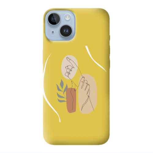 Apple iPhone 14 Plus El Üstünde Sarı Renkli Silikon Telefon Kılıfı