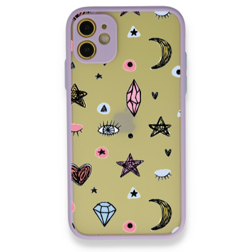 Apple iPhone 11 Elmas Yıldız Ay Lila Hux Telefon Kılıfı