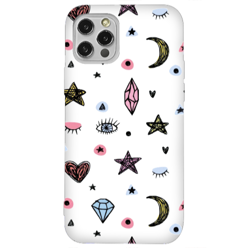 Apple iPhone 12 Pro Max Elmas Yıldız Ay Beyaz Renkli Silikon Telefon Kılıfı