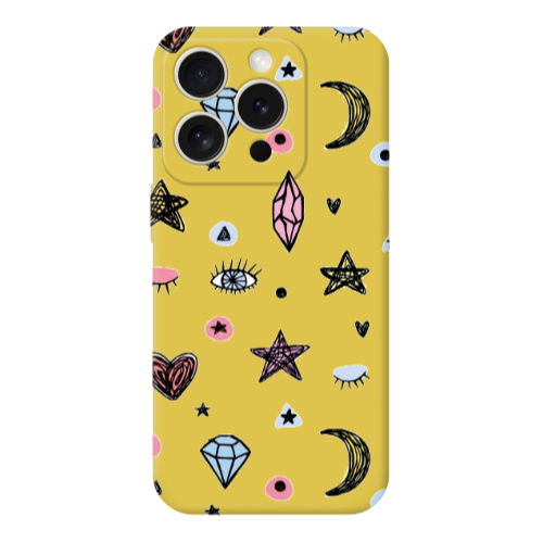 Apple iPhone 15 Pro Elmas Yıldız Ay Sarı Renkli Silikon Telefon Kılıfı