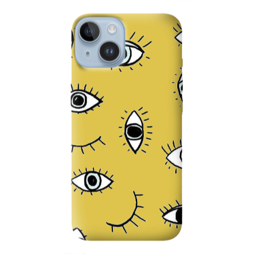 Apple iPhone 14 Plus Eyes 2 Sarı Renkli Silikon Telefon Kılıfı