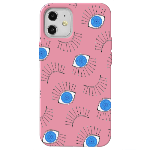Apple iPhone 12 Mini Eyes 4 Pembe Renkli Silikon Telefon Kılıfı