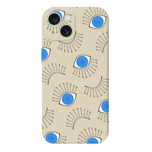 Apple iPhone 15 Eyes 4 Krem Renkli Silikon Telefon Kılıfı