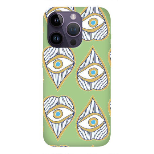 Apple iPhone 14 Pro Eyes Açık Yeşil Renkli Silikon Telefon Kılıfı