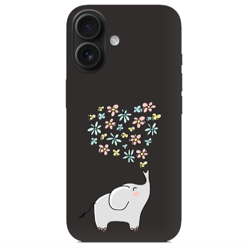 Apple iPhone 16 Fil Çiçek Siyah Renkli Silikon Telefon Kılıfı