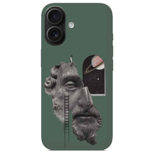 Apple iPhone 16 Plus Gezegen Merdiven Koyu Yeşil Renkli Silikon Telefon Kılıfı