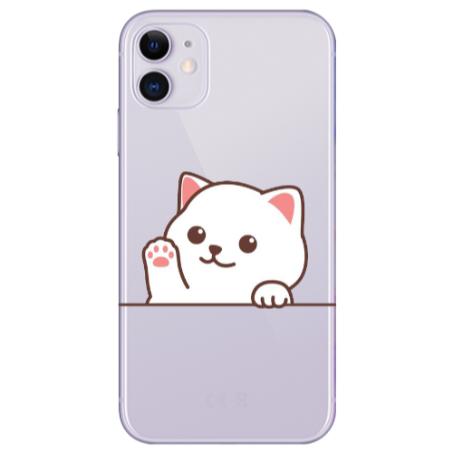 Apple iPhone 11 Kedi Beyaz Renkli Silikon Telefon Kılıfı