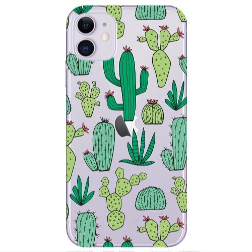 Apple iPhone 11 Kaktüsler Sarı Renkli Silikon Telefon Kılıfı