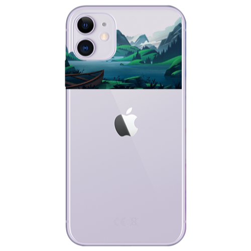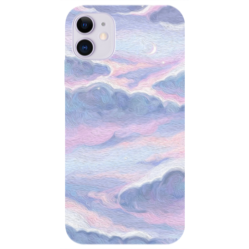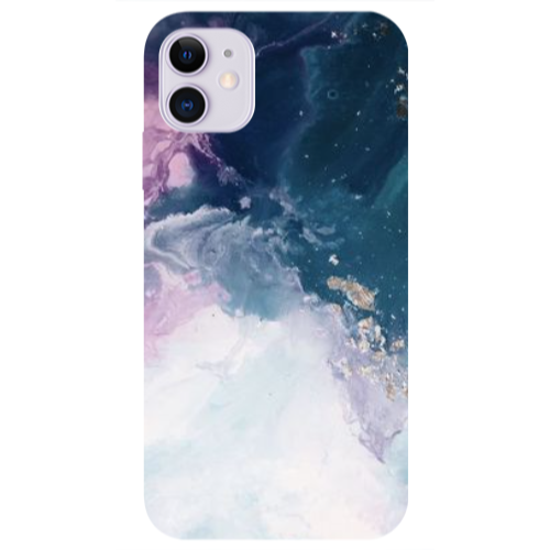 Apple iPhone 11 Mor Bulutlar Koyu Yeşil Renkli Silikon Telefon Kılıfı