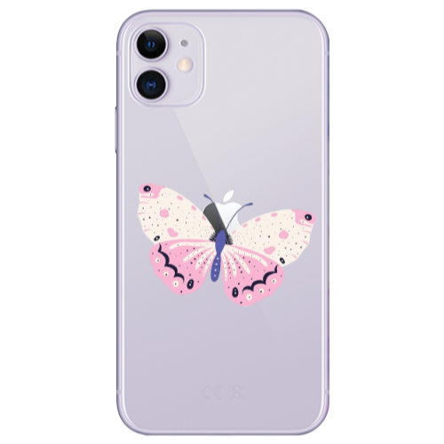Apple iPhone 11 Pembe Kelebek Sarı Renkli Silikon Telefon Kılıfı