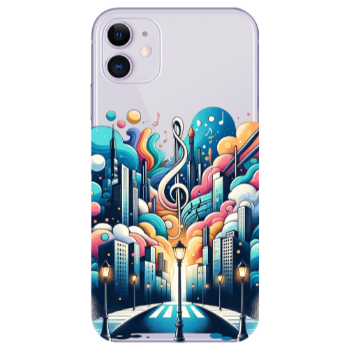 Apple iPhone 11 Müzik Sokağı Pembe Renkli Silikon Telefon Kılıfı