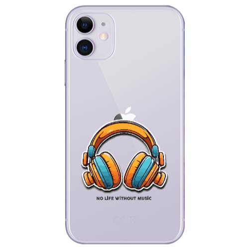 Apple iPhone 11 no life without music Krem Renkli Silikon Telefon Kılıfı