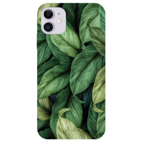 Apple iPhone 11 Pembe Çiçekler Açık Yeşil Renkli Silikon Telefon Kılıfı