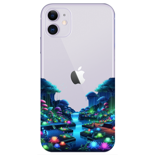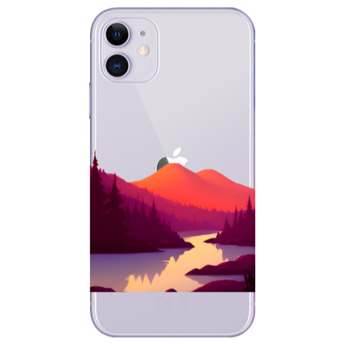 Apple iPhone 11 Yapay Manzara Lila Renkli Silikon Telefon Kılıfı