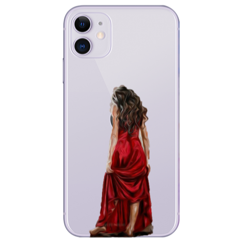 Apple iPhone 11 Kırmızı Elbise Pembe Renkli Silikon Telefon Kılıfı