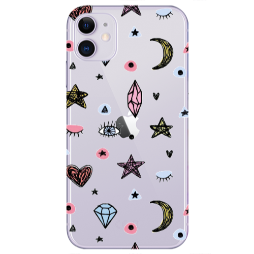 Apple iPhone 11 Elmas Yıldız Ay Lila Hux Telefon Kılıfı