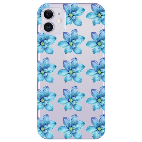 Apple iPhone 11 Mavi Sanat Çiçek Pembe Renkli Silikon Telefon Kılıfı