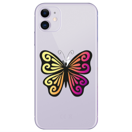 Apple iPhone 11 Rengarenk Kelebek2 Pembe Renkli Silikon Telefon Kılıfı