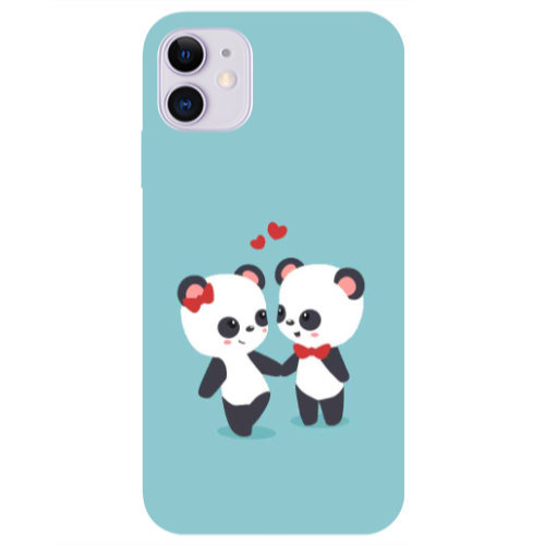 Apple iPhone 11 Panda Pembe Renkli Silikon Telefon Kılıfı