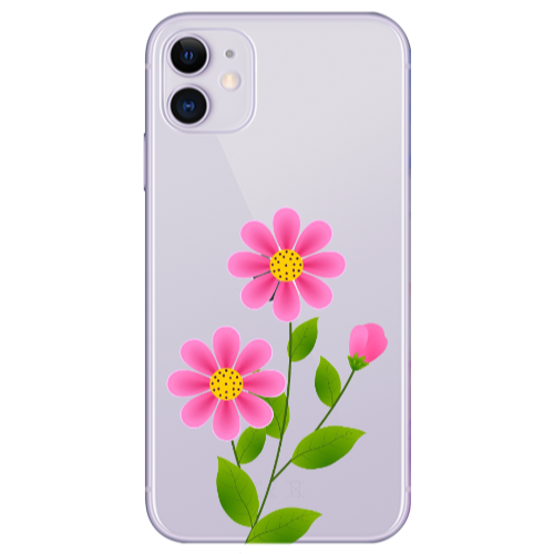 Apple iPhone 11 Pembe Çiçekler Krem Renkli Silikon Telefon Kılıfı