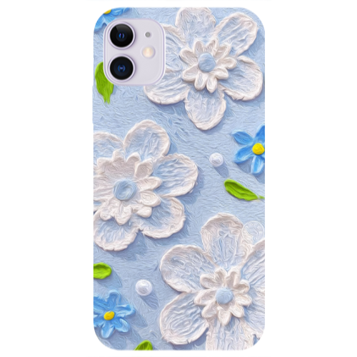 Apple iPhone 11 Beyaz Çiçek Krem Renkli Silikon Telefon Kılıfı