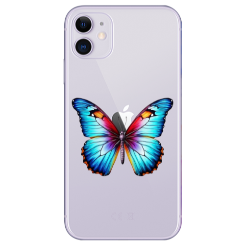 Apple iPhone 11 Mavi Kelebek Lila Hux Telefon Kılıfı