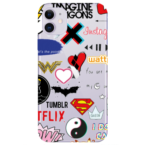Apple iPhone 11 Logolar Pembe Renkli Silikon Telefon Kılıfı