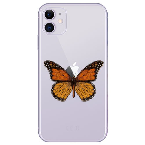 Apple iPhone 11 Kahve Kelebek Sarı Renkli Silikon Telefon Kılıfı