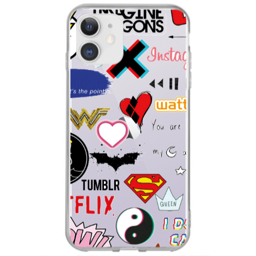 Apple iPhone 12 Line Sticker Siyah Renkli Silikon Telefon Kılıfı