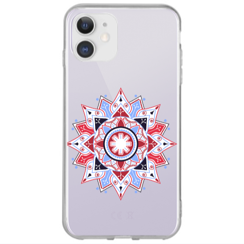 Apple iPhone 12 Kırmızı Çiçek2 Lila Renkli Silikon Telefon Kılıfı