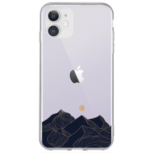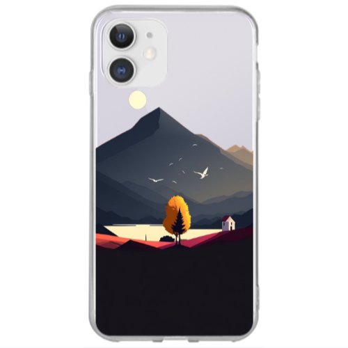 Apple iPhone 12 Siyah Dağ Açık Yeşil Renkli Silikon Telefon Kılıfı