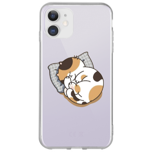 Apple iPhone 12 Uykucu Kedi Lila Hux Telefon Kılıfı