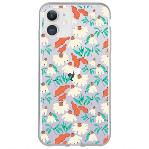 Apple iPhone 12 Çiçekler 2 Gri Hux Telefon Kılıfı